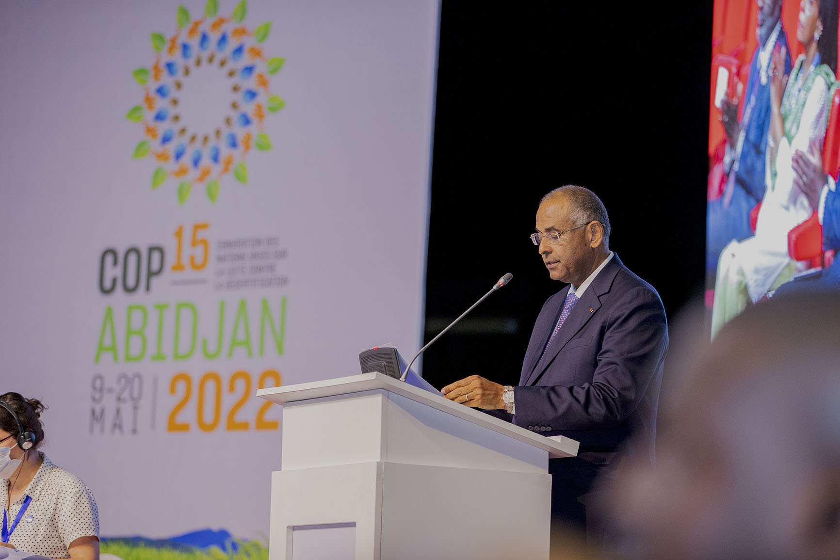 Dans le cadre de la cérémonie de clôture de la COP15 à Abidjan, le Premier Ministre ivoirien, Patrick Achi, a exprimé la volonté de la Côte d’Ivoire de jouer pleinement son rôle dans la lutte contre le réchauffement climatique et la lutte contre la désertification des terres, aussi dans la restauration des équilibres environnementaux primordiaux pour l’avenir de la planète.Déclaration faite le vendredi 20 mai 2022 à Sofitel Hotel Ivoire.
