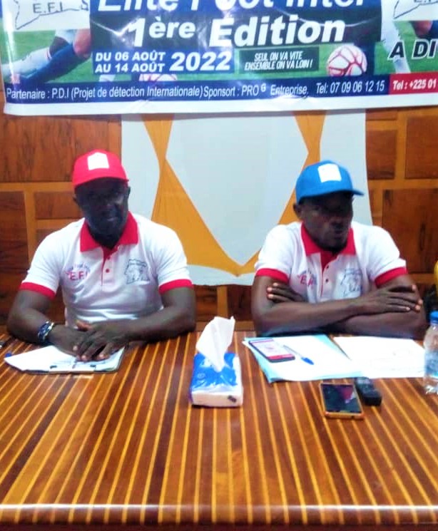 Le dimanche 31 juillet, la salle de conférence de la mairie de Divo a servi de cadre à la cérémonie de lancement de deux projets innovateurs pour donner un coup de fouet à l’épanouissement du football de base. En effet, ayant fait l’amer constat de la non progression du football académie dû à différents paramètres, des spécialistes du secteur ont décidé de mettre sur pied des structures pour oxygéner leur milieu. Ce sont Joseph Gadié président du Club CFEC basé à Toumodi, premier responsable de la ligue nationale du football académie président fondateur du P.D.I (Projet de Détection Internationale) et Adjaro Ismael Junior dit Coach Okocha directeur de zone de Divo initiateur de l’E.F.I (Elite Foot Inter).
