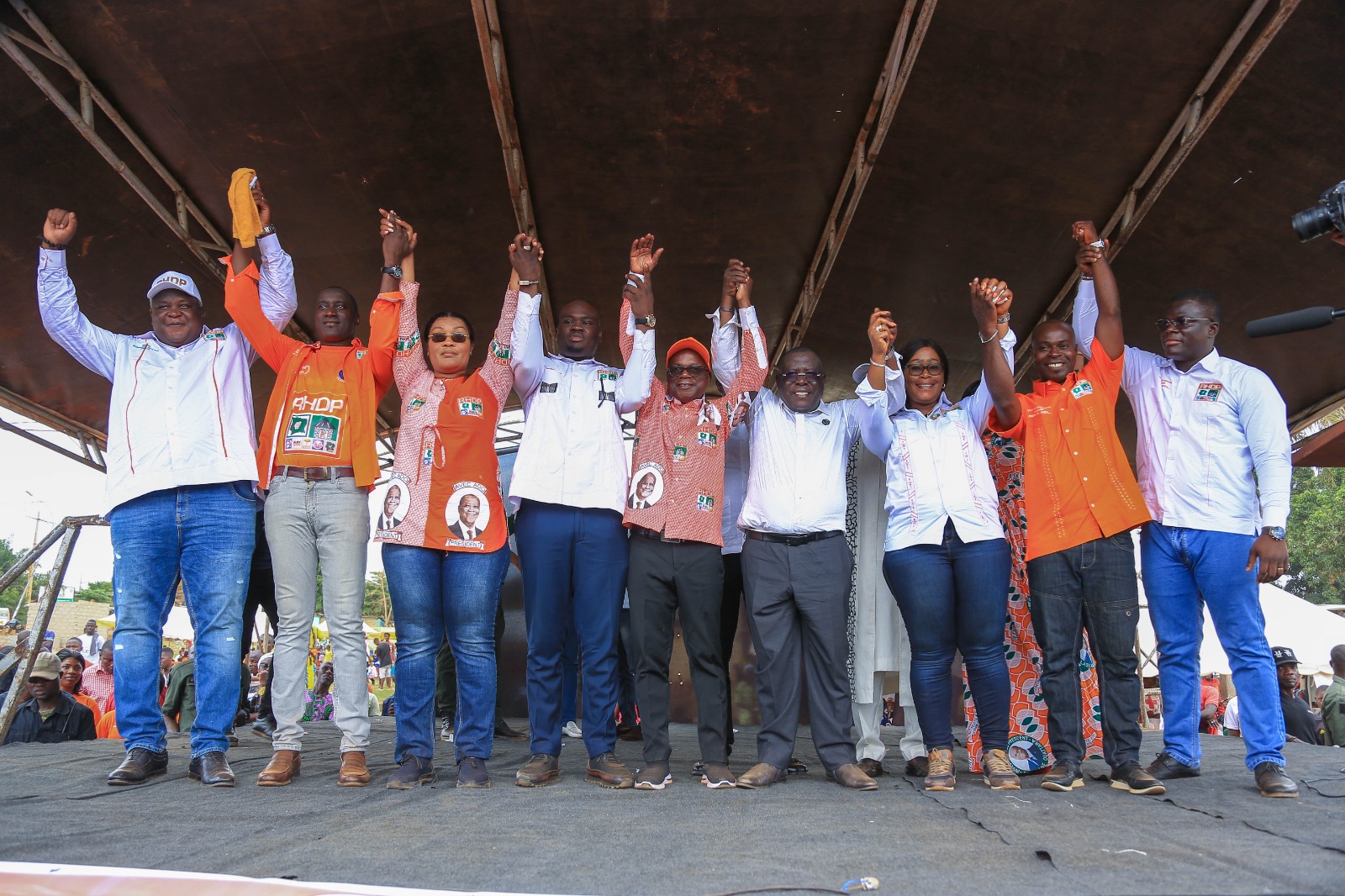 Les candidats retenus pour défendre les couleurs du parti dans la région du Goh ont été appelés sur le podium pour être présentés, sous les cris d’approbation des militants. Il s’agit de Joachim Djédjé Bagnon pour le Conseil Régional. Pour les municipales, les maires actuels Yssouf Diabaté de Gagnoa et Mme Zézé Souassou Nicole Princesse de Guibéroua conduiront les listes RHDP. Du côté Ouragahio, Diégonefla et Oumé, on aura respectivement Yobo Hervé Marius, Zégoua Adja Dominique Israël et Sylla Ousmane qui ont pour mission de rafler la mise pour le RHDP dans ces localités. Pour les y aider le Secrétaire Exécutif a bien voulu confier des missions stratégiques au Ministre Alcide Djédjé et au Député Abel Djohoré, Président du conseil d’administration (PCA) de la SODEXAM, hauts cadres de la région afin de rendre triomphale la victoire prochaine du RHDP dans la région du Goh. Le Ministre Cissé Bacongo a terminé son adresse aux militants du Gôh par ces deux mots, l’entente et la cohésion en tout temps et en tout lieu.