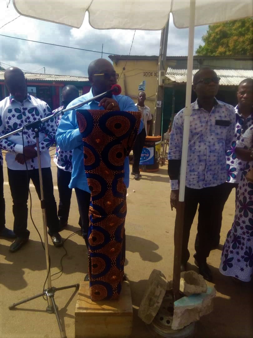 : » J’ai été appelé par des sœurs qui se sont constituées en association, l’association EKLOHEOU (Aimons nous) elles m’ont fait l’honneur de me demander d’être le parrain de cette association et je n’ai pu me dérober a cette invitation parce que je suis fils de Toumodi et je suis donc la pour les encadrer, les aider a avancer pour que demain elles soient autonomes et dans le cadre de la cohésion sociale, parce que vous êtes sans savoir que Toumodi a connu beaucoup de difficultés, et c’est comme ca que nous pouvons colmater les brèches, et petit a petit nous devons faire en sorte que toutes les populations se retrouvent. Ici a Akromiabla, toutes les ethnies et toutes les nationalités se côtoient. Nous sommes la pour ressouder le tissu social qui a été mis a rude épreuve lors des dernières élections présidentielles.
